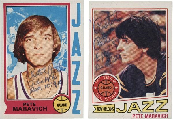 One lot of two cards, both signed in mint blue ballpoint. Cards are Near Mint, signatures are bold and mint.