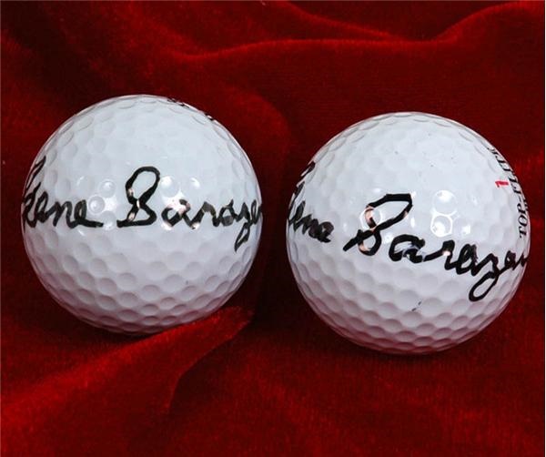 Two golf balls, each signed by Gene Sarazen in mint black sharpie. PSA/DNA sticker on one. Mint