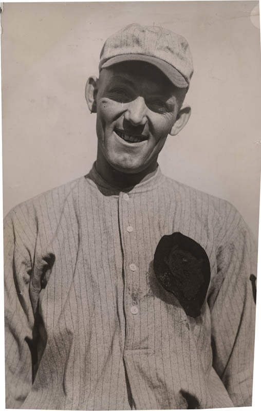 6.75 x 10.25'' original photo from the files of the SF Examiner of Buck Weaver, famous member of the Chicago Black Sox. Some ink on the front covers the White Sox emblem. It is tough to find vintage photos of Weaver. VG-EX.
