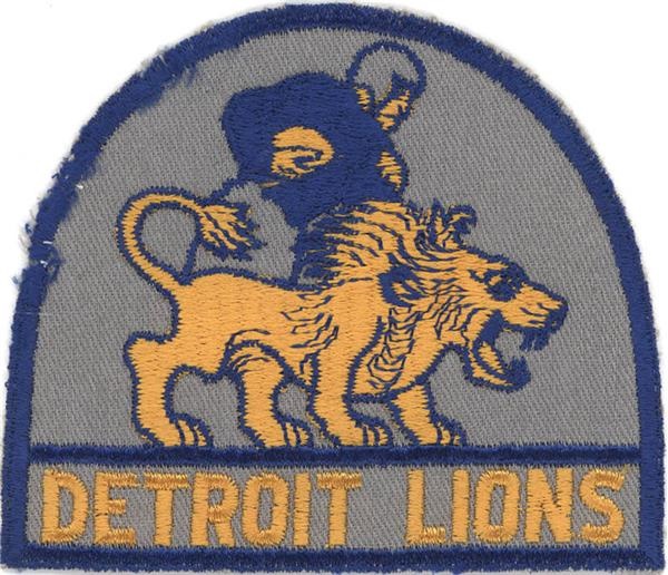 Vintage 4 x 5'' patch worn by Detroit Lions players on their team issued uniform or jacket. A few loose threads and light fraying as it was removed long ago. EX-MT.