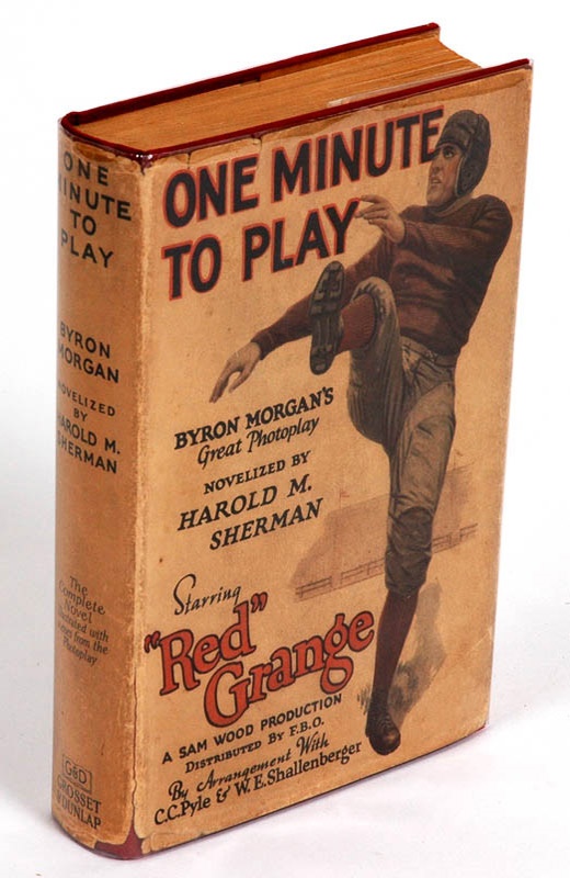 1st edition hardcover of this famous book that was made into a movie starring Red Grange. Grange is illustrated on the front cover and pictured on the back. Some small tears on the edges. VG-EX.