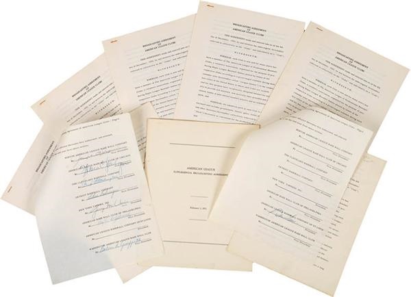 Includes several contracts, the best of which is signed by Joe Cronin, Chas Gehringer, George Weiss, Roy Mack, Calvin Griffith and more. Another is signed by Bill Veeck. There are also six more identical contracts that are unsigned, but have the players names typed. NM-MT.