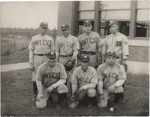 Includes 1924 WICO Minor League team photo with a young Leo Durocher before he played in the majors. The other three are news service photos that picture Durocher as manager of the New York Giants. 7 x 9 to 8 x 10''. EX-MT.
