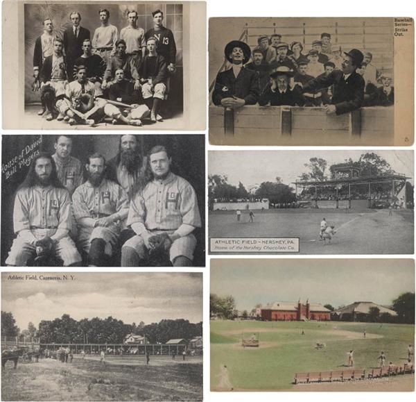 Lot of (32) cards with a nice mixture. Better cards include 1906 Chicago White Sox by VO Hammon, House of David Team, Miss Maud Nelson Female Player, Western Bloomer Girls Female team, several RPPC's and printed photo postcards, etc. Some scarce cards here! Cards range from Poor to Excellent with most VG.