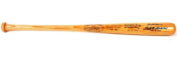 Lot # 95: Ted Williams and Bill Terry .400 Hitters Ltd Ed Signed Bat
