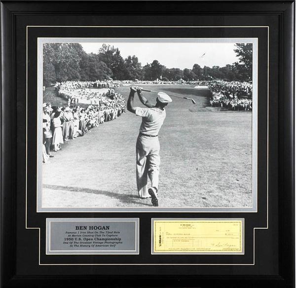 Ben Hogan signed check matted with 16 x 20'' photo. Framed to 27 x 28''. Mint.