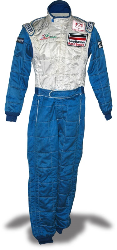 Worn by Marco Andretti, son of Michael and grandson of Mario. Placed second at the Indy 500 this past year. Used during the 2004 season when he was the Skip Barber Dodge Southern Region Champion. Fine use and signed. LOA from Marco Andretti.