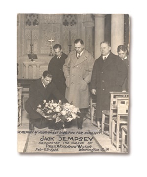 Spectacular image of JD who "Decorates The Grave" on February 22, 1924. This beautiful, perfect contrast image is decorated in vintage black with the wording. 9.5x7.5", EX+ & mounted in cardboard.