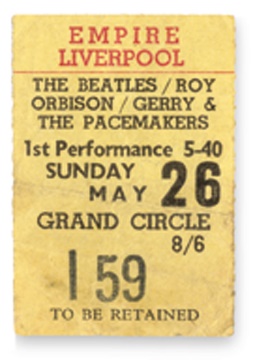 This Liverpool ticket has several horizontal creases, but at least Orbison and the Pacemakers didn't suffer the same fate as did the handbill!