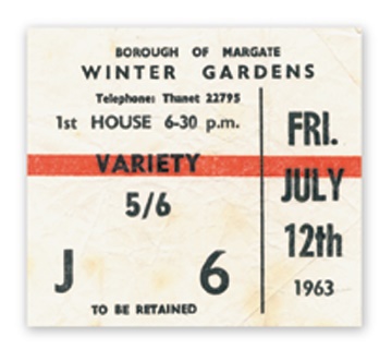 A ticket for the next to last night of the Margate series of concerts. Vg.