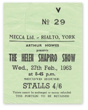 No mention of the Beatles on the ticket since they were seventh on the bill in support of the sixteen year-old Helen Shapiro.