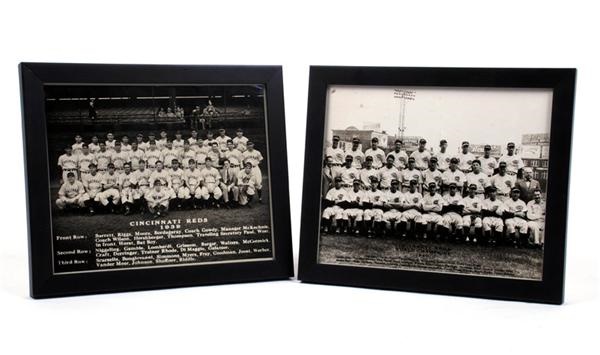 Two vintage 8 x 10'' team photos, each framed to 9.5 x 11.25''. Both of these teams were the National League Champs. Each player is identified at the bottom of the photos including Ernie Lombardi, Vander Meer, etc. Mint.