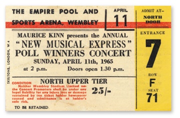 Oversized ticket stub for the NME concert. A seating chart and nearest underground/bus locations are listed on the reverse. 3x4 ?" Ex