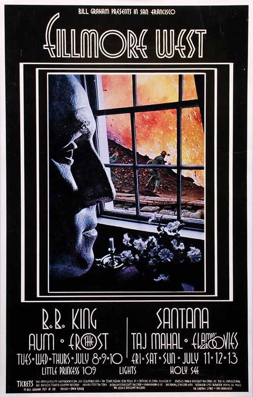 Lot # 615: 1969 BB King, Santana, & Taj Majal at Fillmore West Music Poster
