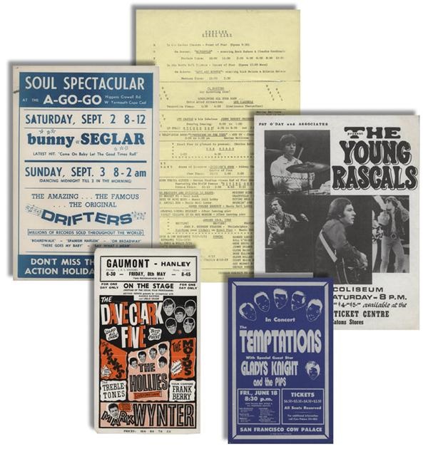 Nice collection of (5) music bills from the 1960's. Bands include, The Beatles, The Temptations w/ Gladys Knight & the Pips, The Young Rascals, The Kinks, Drifters and more. Condition ranges from VG to NM.