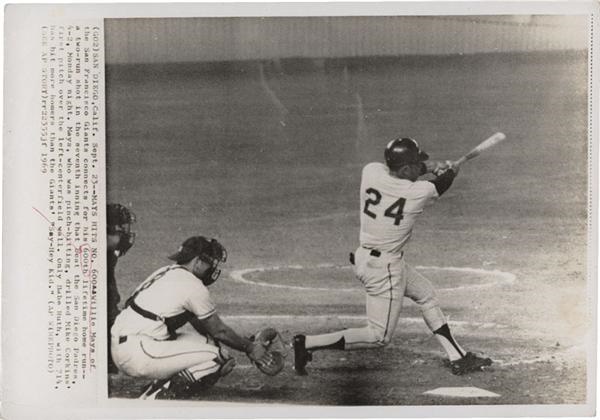 Willie Mays connects for his 600th Career Lifetime Homerun. 7 x 10''. EX-MT.