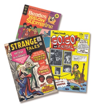 Various 1960's and later Beatles and "Beatle themes" highlight this collection from all the big names. Marvel, Gold Key, DC are all well represented in this esoteric grouping along with an array of other characters. VG to VG+. A fun investment.