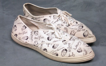 Sneakers. Women's tennis shoes sport the images and the name "The Beatles" covering these cloth beauties. Overall excellent condition. This is one of the more interesting Beatles merchandising pieces. This proves that, yes, they made everything.