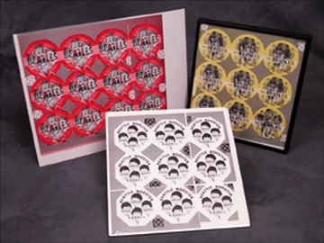 From the Vari-Vue Company ,who manufactured them, these sheets were originally covered with special plastic to make them flicker and then cut into individual buttons. Three different sheets, I Like Beatles, I Love Ringo, Paul,John ,George and band, and the Beatles Booster (misspelled so this one was never issued). NRMT.