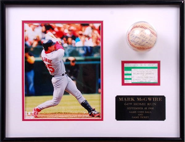 photo of McGwire at the plate and ticket stub from the game. Measures