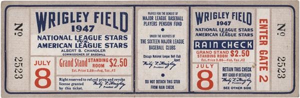 Full ticket for the game held at Wrigley Field in Chicago. NM-MT with no creases or tears.