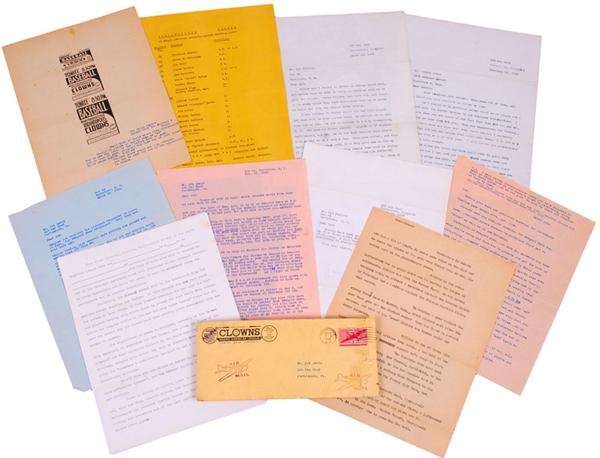 Lot of (10) typed letters with Negro League content, all dating from the late 1940s. Interesting content, most related to upcoming games but there is mention of players such as Booker McDaniels, Hank Thompson, Ford Smith and more. Most of the material is related to the Indianapolis Clowns and sent by Syd Pollock (two are signed "Syd"). EX-MT
