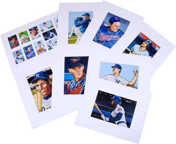 Even though these are relatively modern, they are scarce. The Standard Catalog lists the set as having (11) pieces, however this lot has the complete set of (11) plus a slightly larger print with smaller normal sized cards of each player. 11 x 14''. These retailed for $400-450 the year that they were issued. (12) total pieces. NM-MT.
