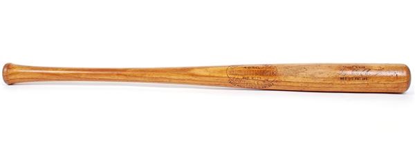 32 3/4 hand turned Mode 40 T.C. Baseball Bat with Ty Cobb facsimile signature on the barrel. Somebody attempted to forge Cobb's signature on the barrel and even though it is well faded, it is still visible under close inspection. It also appears that the facsimile signature on the barrel has been enhanced with marker. However, there are no cracks, and the bat shows only light overall wear.