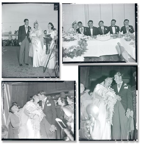 Fascinating collection of negatives that picture Joe DiMaggio and first wife Dorothy Arnold en route to marriage. Six picture the pair getting their marriage license, two show their wedding cake and seventeen are shots taken at their November 19, 1939 wedding. All measure 4 x 5’’. NM-MT.