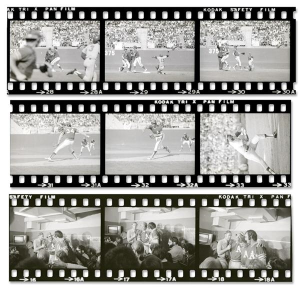 Huge collection of negative images from the World Series match-up between the New York Mets and Oakland Athletics in 1973. Includes (57) from Game 1, (62) from Game 2, (87) from Game 6 and (100) from Game 7. The vast majority are game action. Of note: amazing shots of pitchers Rollie Fingers, Jim Hunter, Tug McGraw and more. All 35mm. NM-MT