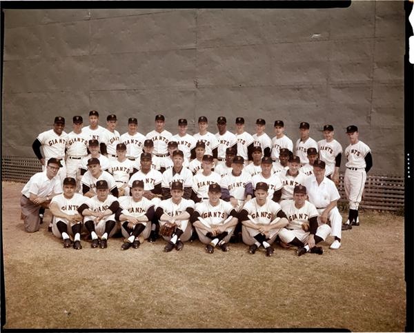 Great negative collection includes Giants team images from 1958 (6-first year color transparencies), 1959 (2), 1961, and 1967 (2). All are 4 x 5’’ except the 1967’s, which are 2.5 x 2.5’’. The 1958 team photos are especially impressive. NM-MT.