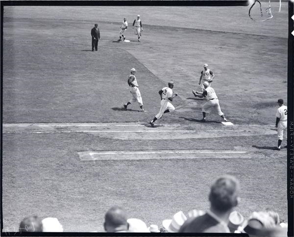Jones, Orlando Cepeda, and Larry Jansen as well as the Giants Dog Mascot, ticket sales, shots of the ballpark, fans, the mayor throwing out a first pitch, the team arriving at the airport, game action, practice on the field and countless more. All are housed in their original envelopes, often with players identified. About 80% date from before 1961, with a really nice selection from the Giants' first year team in 1958. Most measure 2.5 x 2.5" to 4 x 5’’. NM-MT.