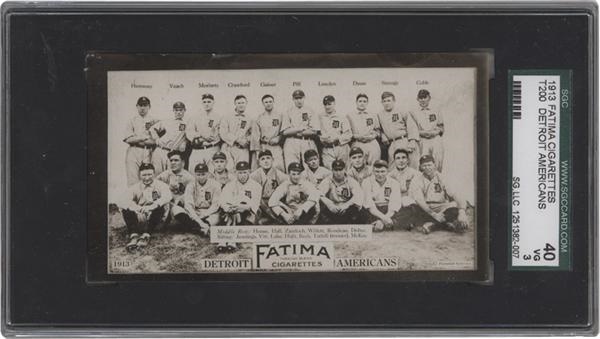 Each player is identified on the card including Ty Cobb, Sam Crawford, Hugh Jennings and more. Great photo clarity. Corners have light wear and there are some light surface cracks on the surface. Very Good is actually a high grade for this issue.