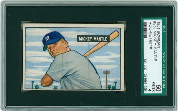Lot # 368: 1951 Bowman Mickey Mantle Rookie SGC 50 VG/EX 4
