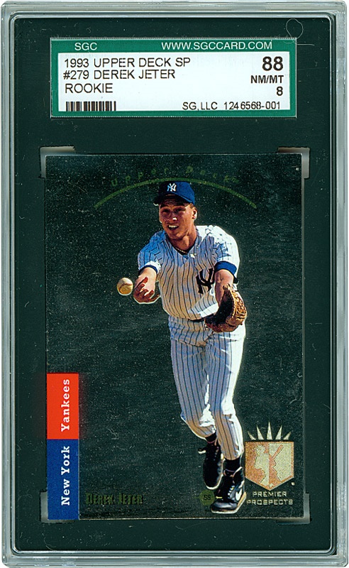 Jeter has played for the NY Yankees since 1995 while leading the Yankees to 4 World Series titles and an additional 2 AL Championships. This rookie card is a very condition sensitive card due to the fagile nature of the foil surface and edges. One of the truely great modern cards.
