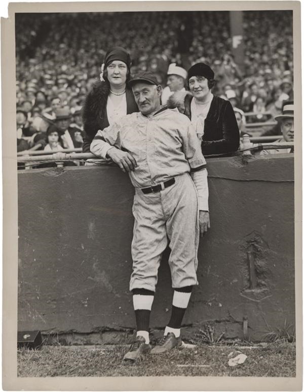 Vintage 8 x 10'' photograph by the noted studio of Underwood and Underwood. Baseball Hall of Famer,Honus Wagner, is pictured at a Boston All-Star game along with his wife and another woman. The photo has a small chip in the upper left corner, but has nice clarity. Overall in excellent condition.
