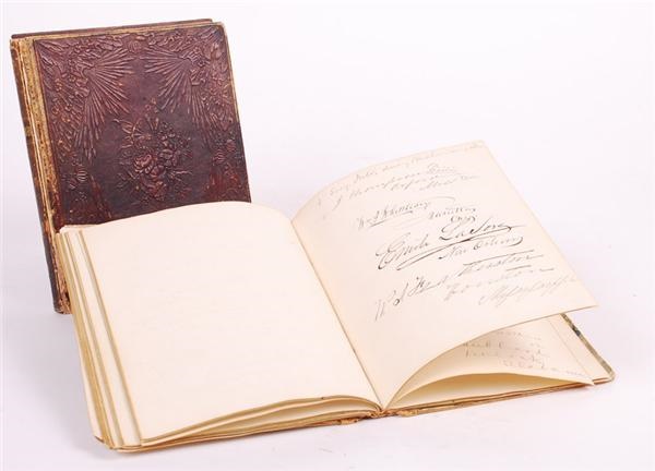 The 31st Congress presided during a tumultuous time for the US Presidency. Zachary Taylor was Commander in Chief when it convened in 1850 and by the end of the year Millard Fillmore would be leading the country. It was also the first year California was represented in congress. Here is a fascinating collection of mint signatures, in (2) volumes, from the members of that 31st congress. On the first page of the marbled-cover volume, is the signature of the Speaker of the House, Howell Cobb. The new California reps and many future senators have also signed within these pages. The owner, a Congressional page, made notes throughout highlighting important individuals and what their future positions became. The front boards of both books have separated from the volume and have bumping on the corners and spine. The interior pages are excellent, however, and the signatures are well preserved. Comes with a floor plan and directory for the Hall of the House of Representatives that is EX+ and contemporary with the autograph albums.