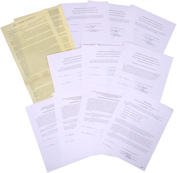 Official NFL contract is the yellow player's carbon copy and was signed by Bruce. It covers the seasons from 2000 through 2006. There are also nine different addendum's and a signing bonus document. There are a total of ten related documents all have Bruce's original signature on them and were signed in 2000.