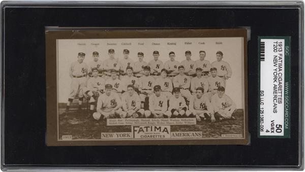 By far the most scarce card in the set, it has been assigned the relatively high grade of VG/EX 4 by SGC. Each player is identified on the front including Frank Chance, Roger Peckinpaugh, Bill McKechnie and more. Light corner wear and a few minor surface cracks.