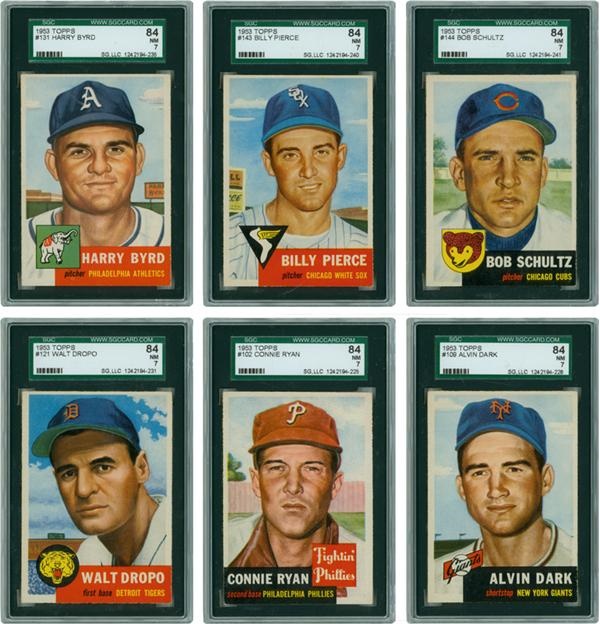 The cards have been graded (all are 84 NM 7) and encapsulated by Sportscard Guaranty.