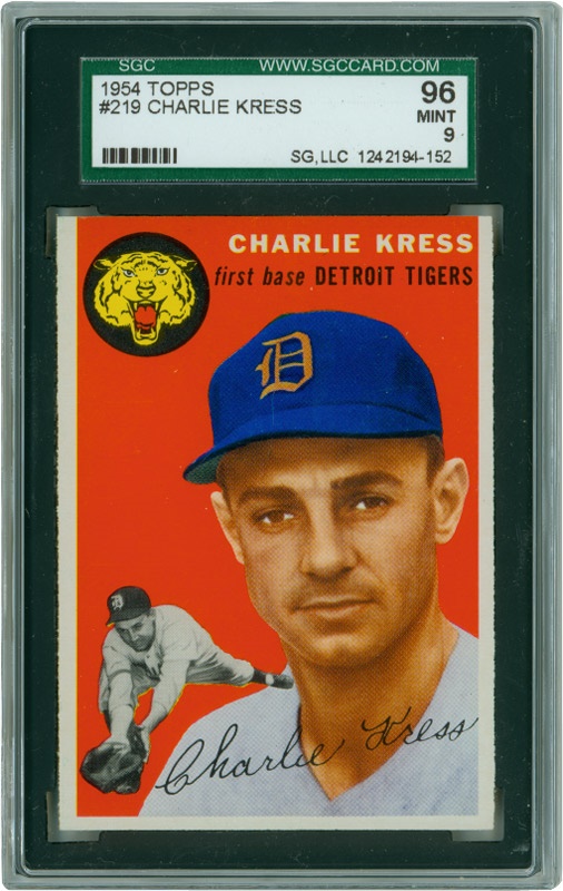 Lot # 361: 1954 Topps #219 Charlie Kress SGC 96 MINT 9