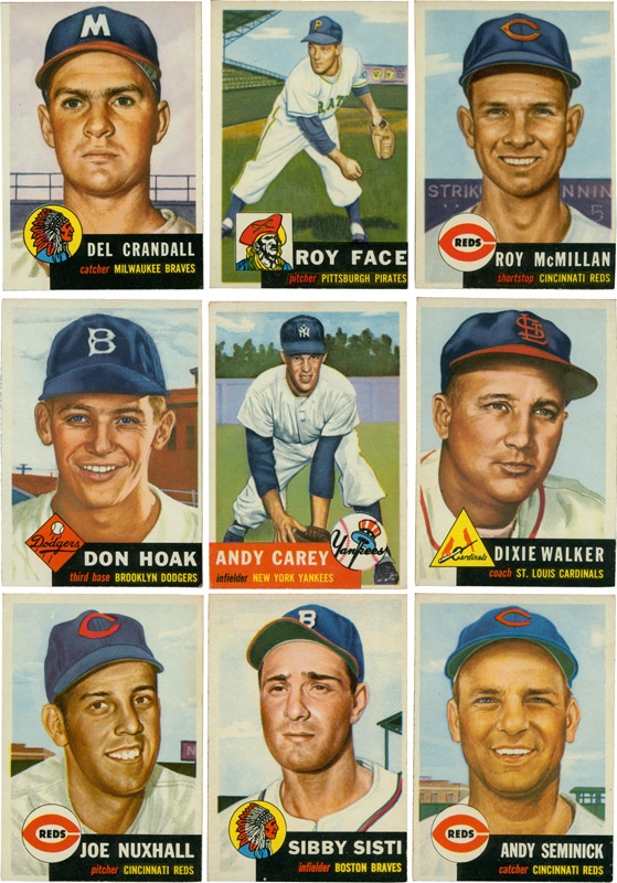 All of the series are well represented including (31) cards from the scarce high number series.  No Mantle, Mays or Paige, but there are several other Hall of Famers and stars.  Some duplication, but no more than 4 or 5 of any one player.  This is one man's childhood collection who was obviously very careful with the cards after he removed them from the packs.  40% EX-MT, 50% EX, 10% lesser.