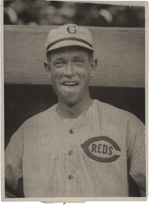 Soon to be banned but luckily he got in this amazing image in a Reds uniform before he had to go. EX. 7x9''.