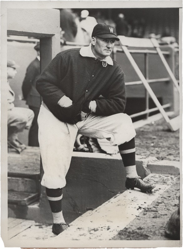 Special image of Walter Johnson leader of the Washington Senators. Corner chip o/w EX-MT. 6.5x8.5''. Original paper caption on verso.