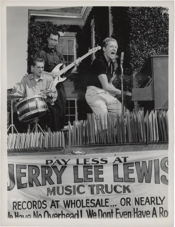 Fascinating shot of The Killer performing on the back of a truck while selling his own "Records at Wholesale." 8x10''. EX- MT.