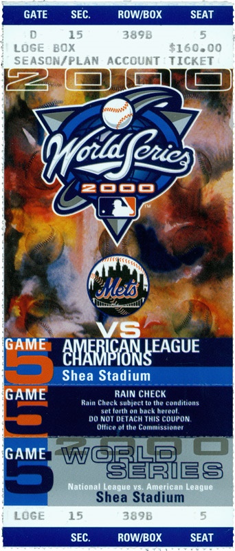 Lot # 1396: 2000 World Series Game 5 Unused Ticket