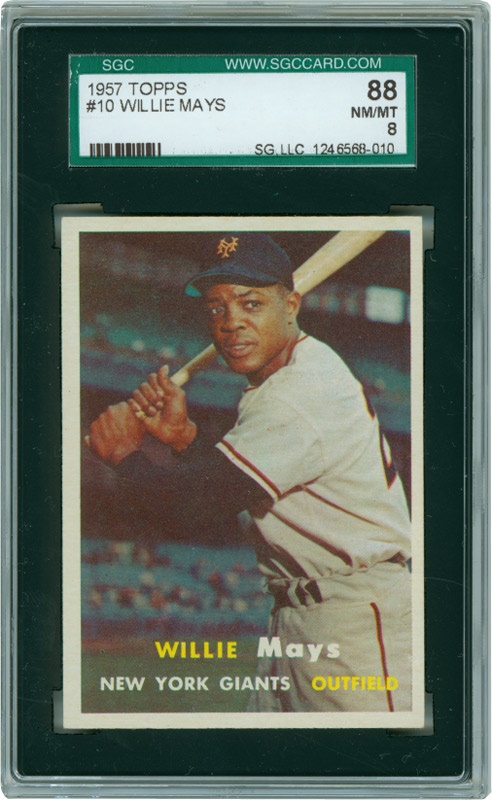 This Beautiful Willie Mays card with sharp corners and near perfect centering has no creases. Seven have been graded this high, with only three higher. Conservatively graded. Super card.