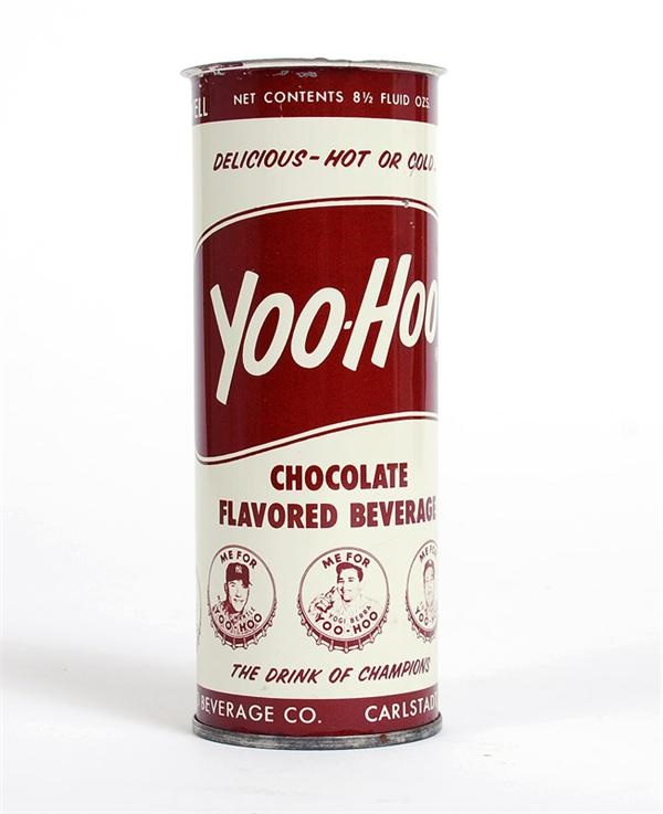 8 1/2 ounce Yoo-Hoo can depicting Yankee greats Mickey Mantle, Yogi Berra, Whitey Ford, Tom Tresh and Bobby Richardson. Can is missing its top and has a couple of minor scratches but is otherwise in very nice condition. Dates to the 1960's.