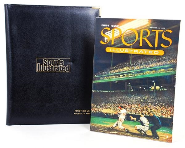 This is the inaugural issue of America's #1 sports publication, Sports Illustrated. It is dated August 16, 1954 and features Milwaukee Braves star Eddie Mathews at bat in Milwaukee County Stadium on the cover. Magazine is Mint and comes with SI issued leatherette folder.