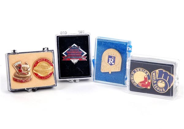 - 1985 Kansas City Royals Word Series press pin. Royals beat Cards in seven to win their first title. NRMT but missing back.